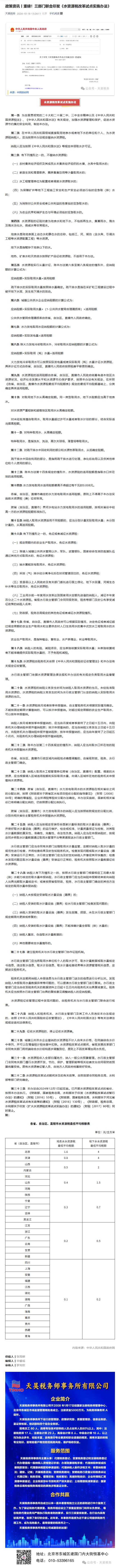 政策资讯丨重磅!三部门联合印发《水资源税改革试点实施办法》