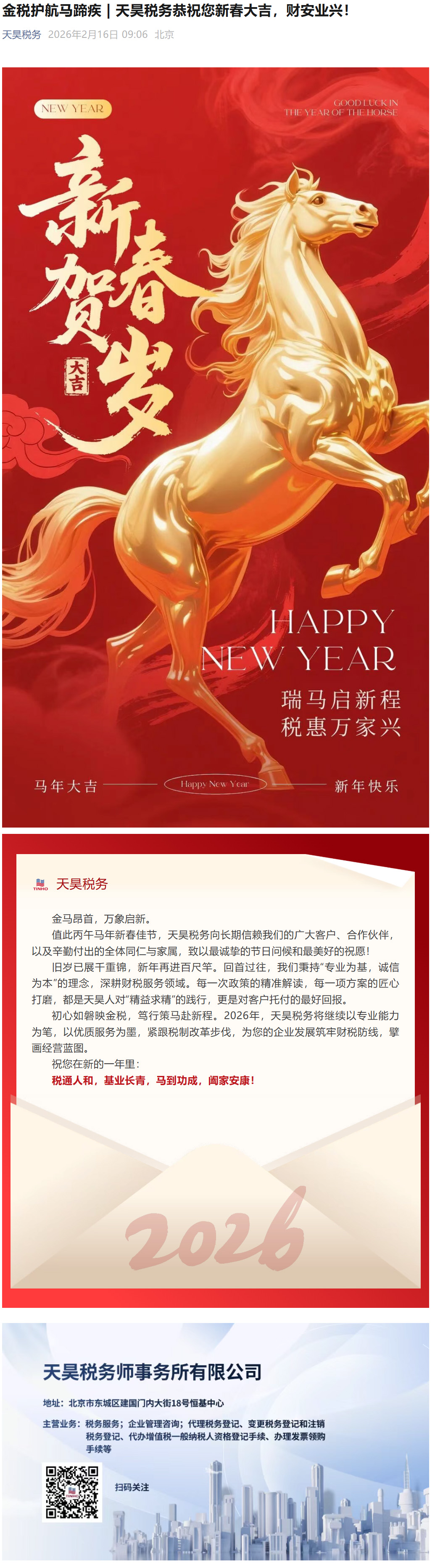 金税护航马蹄疾 | 天昊税务恭祝您新春大吉,财安业兴!